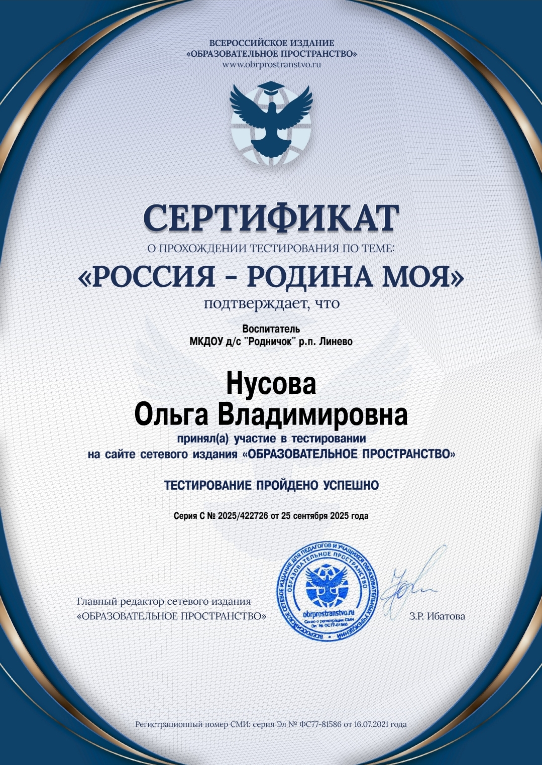 Нусова Ольга Владимировна